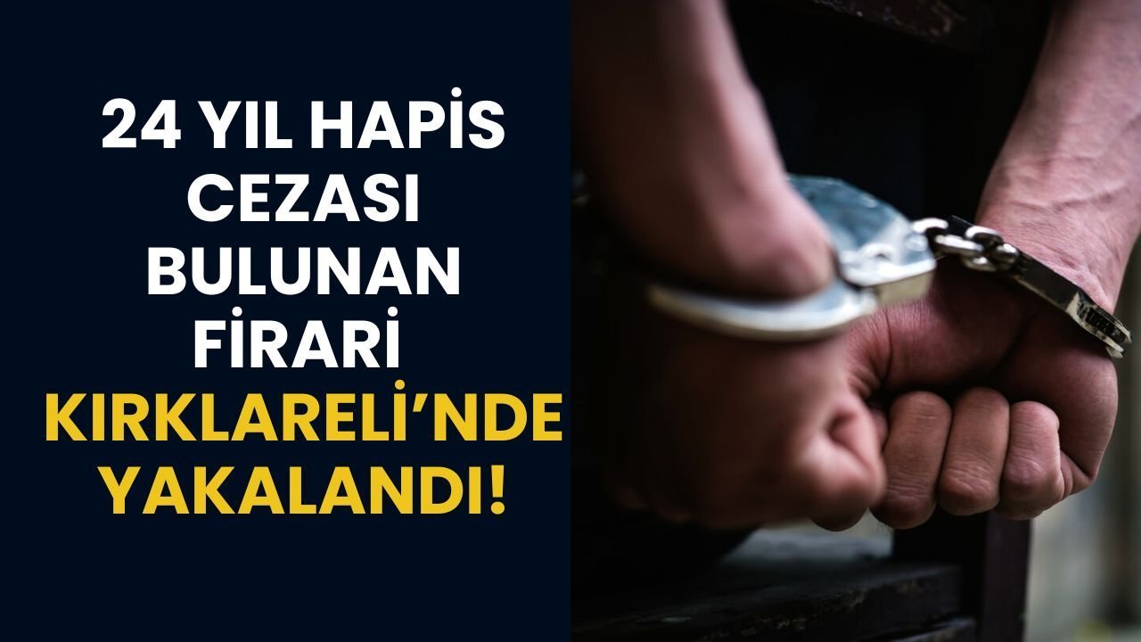 Kırklareli'nde hakkında 24 yıl 6 ay kesinleşmiş hapis cezası bulunan firari hükümlü yakalandı.