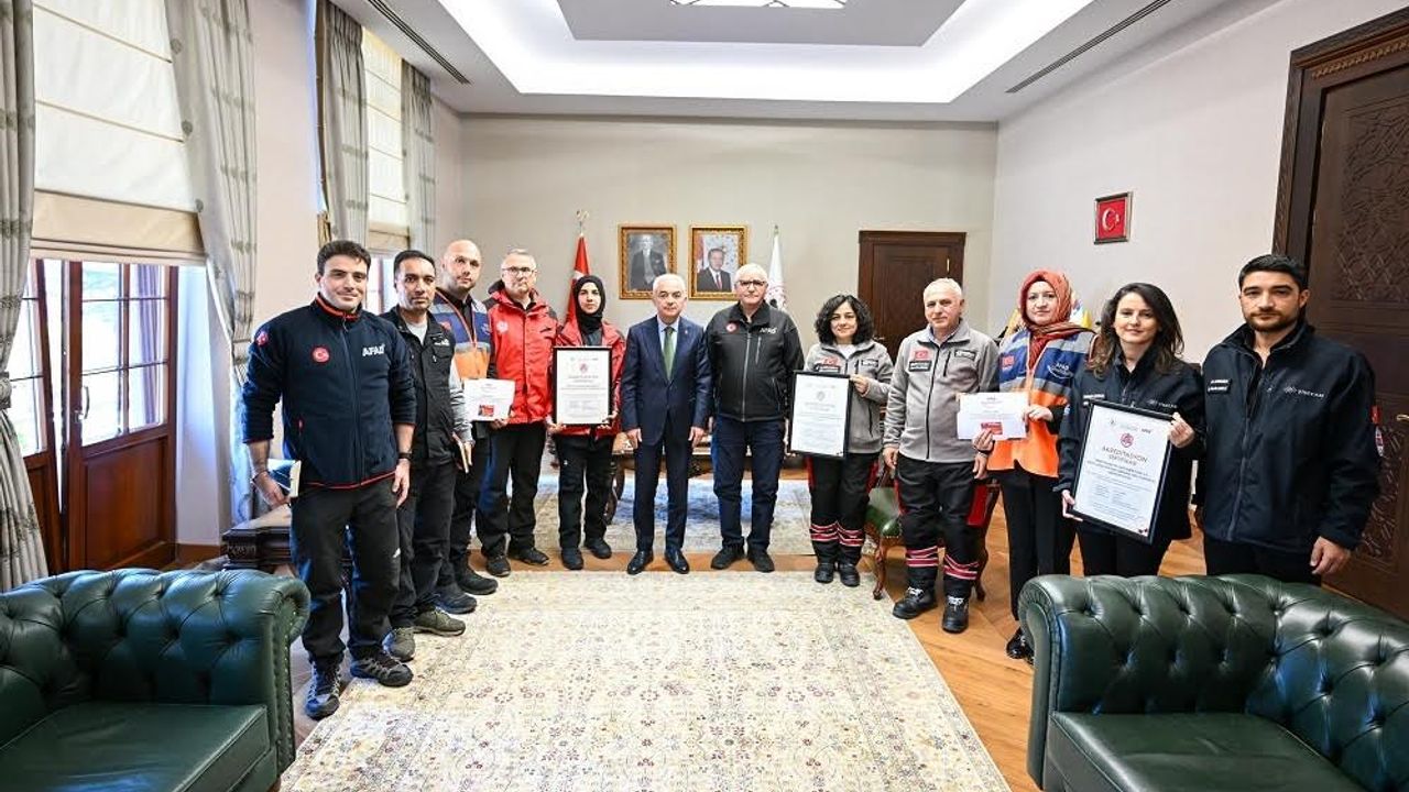 Kırklareli Valisi Uğur Turan, AFAD’ın kuruluşunun 16. yıl dönümü dolayısıyla, İl Afet ve Acil Durum Müdürü Salih Erden eşliğinde, AFAD Kırklareli İl Müdürlüğü personelini, Destek AFAD gönüllülerini ve İlimizde kentsel arama kurtarma alanında akredite edilen sivil toplum kuruluş üyelerini makamında kabul etti.