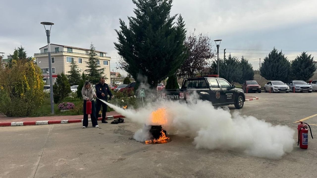 Yangın anında ilk müdahalede nelerin yapılıp yapılmaması gerektiğini anlatan itfaiye personelleri, doğru mücadele ile yangınların önüne geçilebileceğini vurguladı.