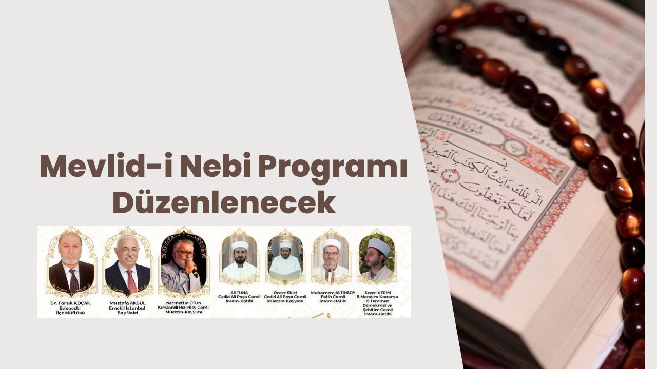 6 Kasım Perşembe günü Babaeski’de İlçe Müftülüğü tarafından Peygamberimiz (S.A.V.)’in dünyaya gelişi vesilesi ile Mevlid-i Nebi Programı düzenlenecek. Gündüz Onat Festival Alanı içerisinde bulunan Karnaval Düğün Düğün Salonu’ndaki program saat 14:00’da başlayacak.