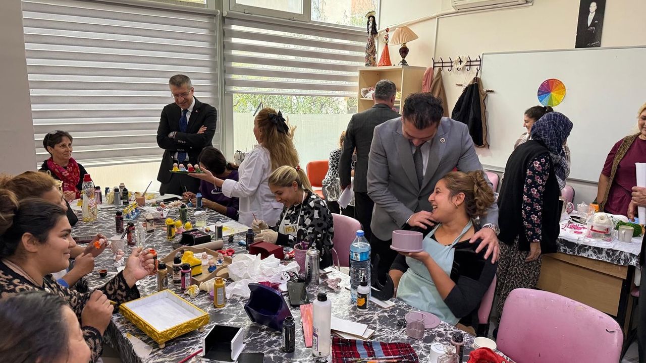 Toplantı sonrasında merkezdeki kursları ziyaret eden Kaymakam Orhan ve Başkan Yayla kursiyerlerle bir araya geldi.