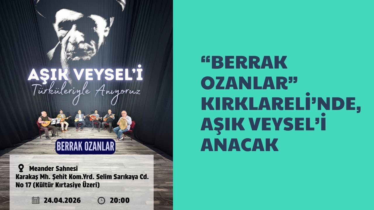 Kısa bir süre önce şair-yazar-ozan Hasan Öztürk önderliğinde Kırklareli’nde kurulan “Berrak Ozanlar” Grubu ilk etkinliğine imza atmaya hazırlanıyor. 6 kişiden oluşan topluluk, geçtiğimiz ay aramızdan ayrılışının 53. yıldönümünü idrak ettiğimiz Halk Ozanı Aşık Veysel’i bir kez daha eserleriyle bizlere hatırlatacaklar.