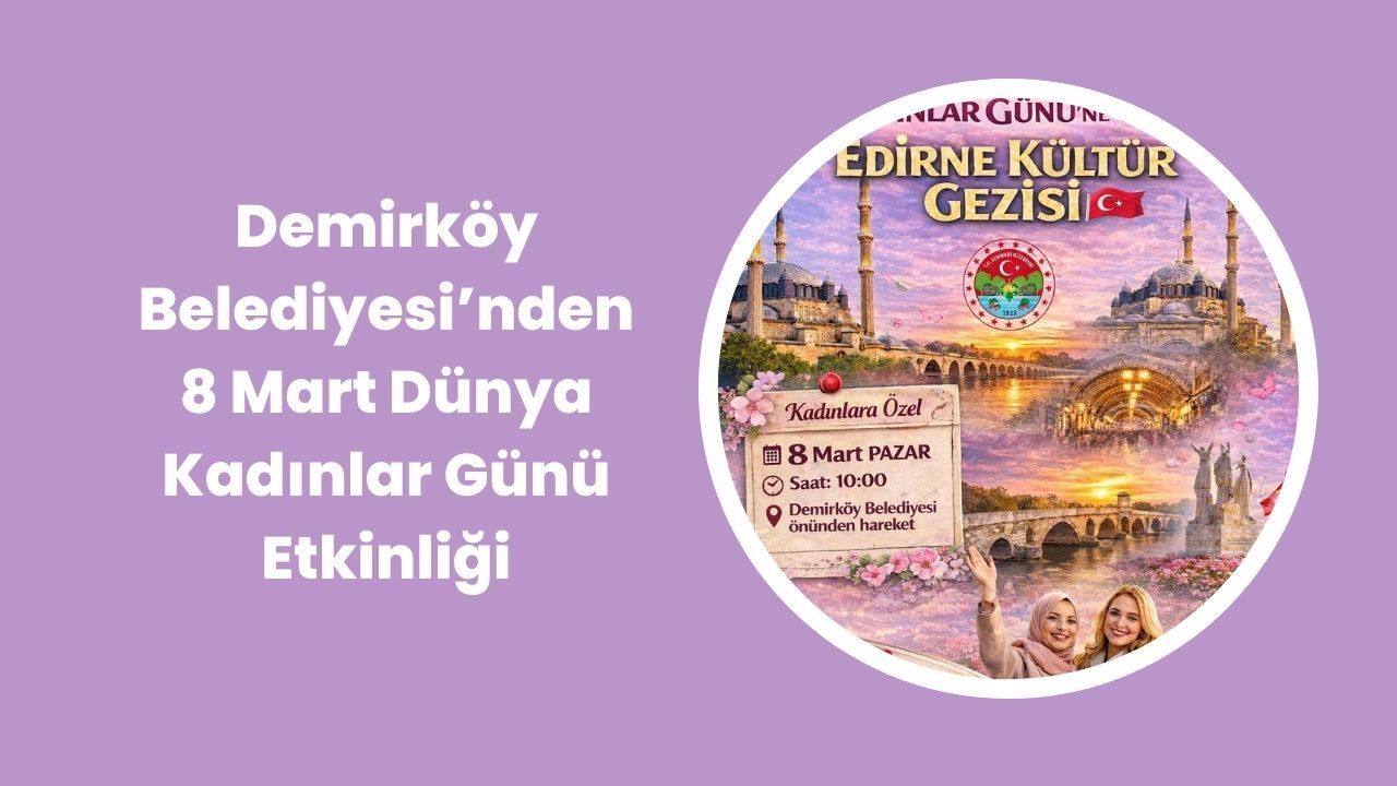 “Demirköy Belediyesi olarak 8 Mart Dünya Kadınlar Günü’ne özel düzenleyeceğimiz Edirne Tarihi ve Kültürel Gezi Programı’na kıymetli hemşehrilerimizi davet ediyoruz. Program kapsamında başta Mimar Sinan’ın ustalık eseri ve UNESCO Dünya Mirası Listesi’nde yer alan Selimiye Camii olmak üzere; Eski Cami, Üç Şerefeli Cami, Meriç Köprüsü, II. Bayezid Külliyesi ve Karaağaç Tren Garı ziyaret edilecektir. Gün boyu konforlu ulaşım ve rehberlik hizmeti sağlanacak olup, akşam saatlerinde iftar programımız belediyemiz tarafından ikram edilecektir. 8 Mart’ın anlam ve önemine yakışır şekilde; tarih, kültür ve Ramazan’ın manevi atmosferini hep birlikte yaşayacağız.”