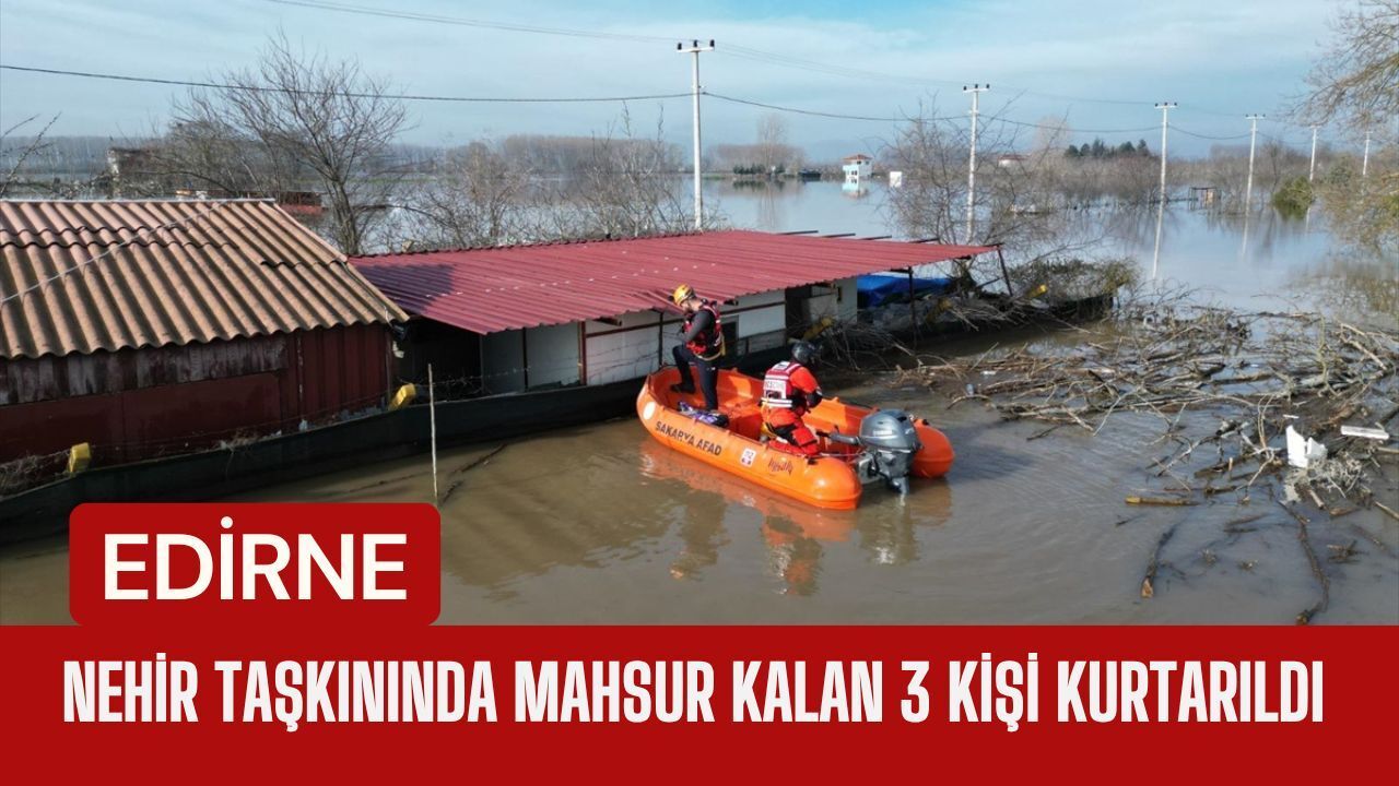 Afet ve Acil Durum Yönetimi Başkanlığı (AFAD), Edirne’de nehirlerdeki debi artışı nedeniyle meydana gelen taşkında mahsur kalan 3 kişinin kurtarıldığını bildirdi.