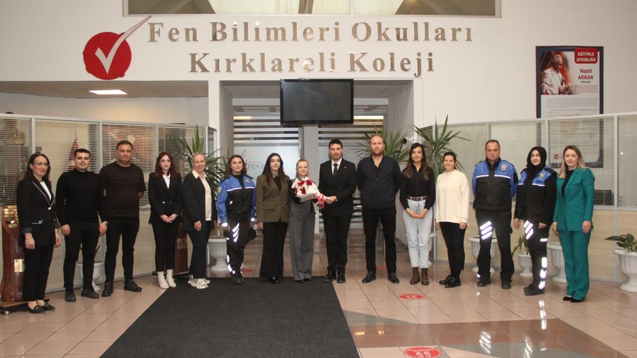 Kırklareli İl Emniyet Müdürlüğü, ilimizde eğitim alanında faaliyet gösteren Fen Bilimleri Okulları Kırklareli Koleji’ne bir ziyaret gerçekleştirdi. Bu kapsamda Okul Yönetimi ile eğitim-öğretim faaliyetleri hakkında bilgi alışverişinde bulunuldu. Kurumlar arası iş birliğinin geliştirilmesi amacıyla gerçekleştirilen ziyaret olumlu ve verimli bir ortamda tamamlandı.