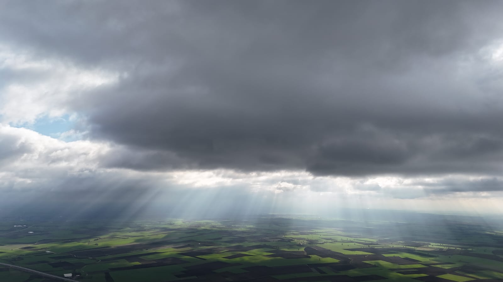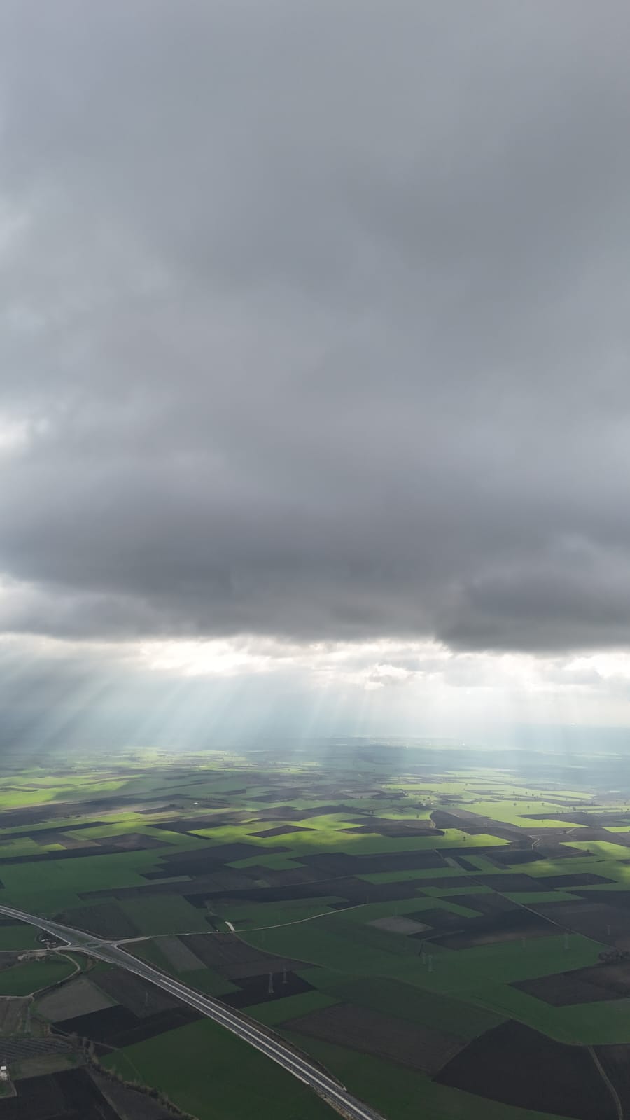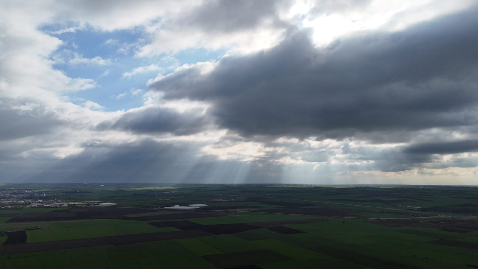 Bir yanda yeşilin en güzel tonlarına bürünmüş verimli tarım arazileri bir yanda hırçın ama bir o kadar da sakince ilerleyen yağmur bulutları ve gökyüzü.