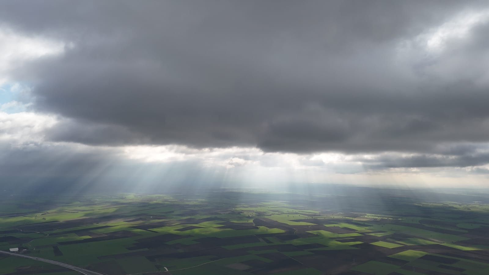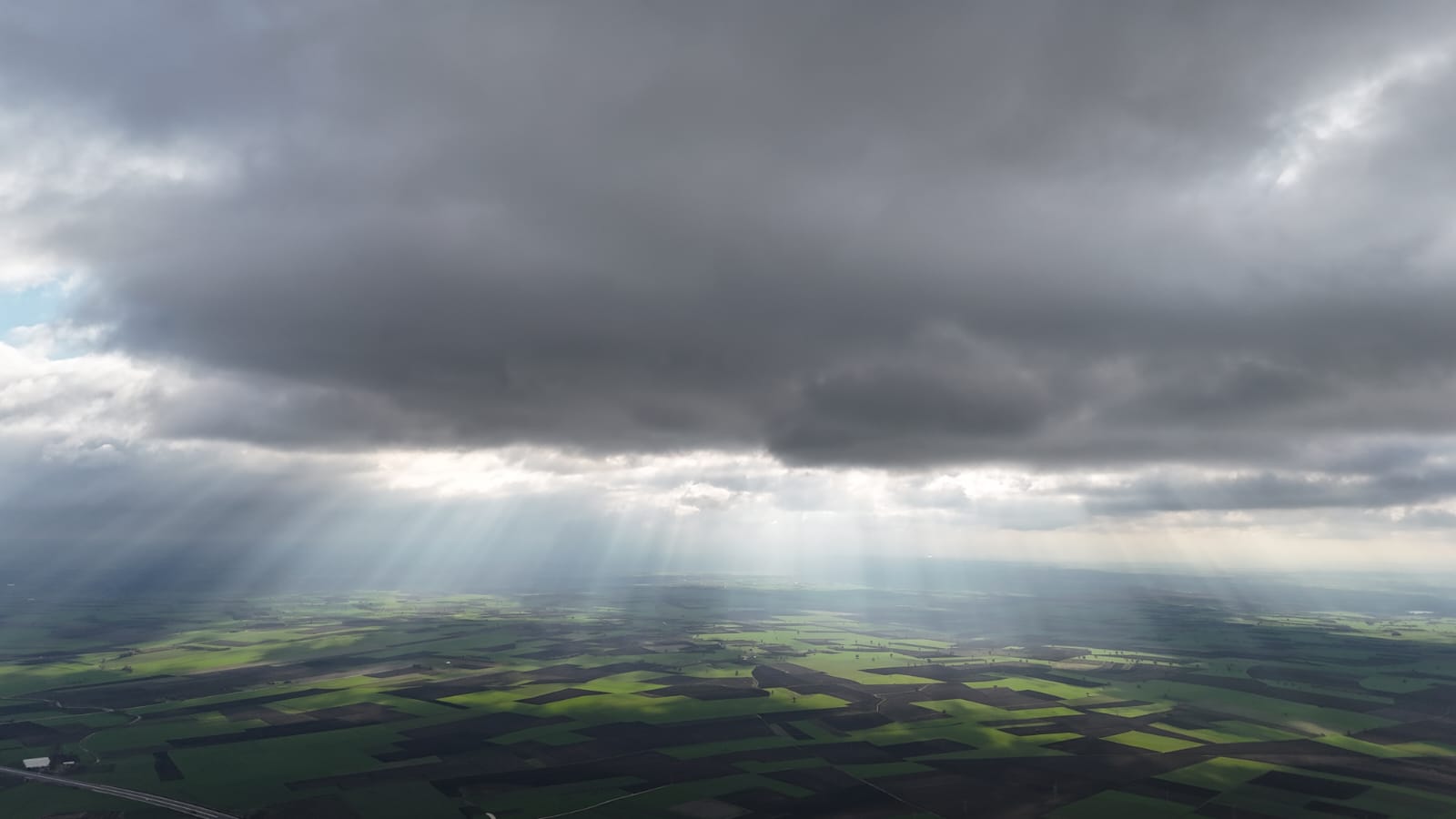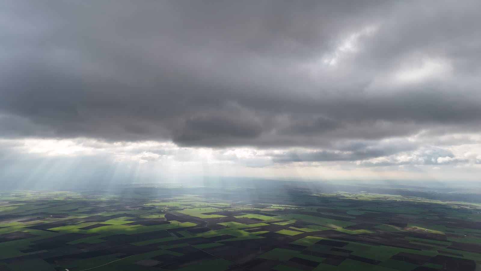 Bir yanda yeşilin en güzel tonlarına bürünmüş verimli tarım arazileri bir yanda hırçın ama bir o kadar da sakince ilerleyen yağmur bulutları ve gökyüzü.