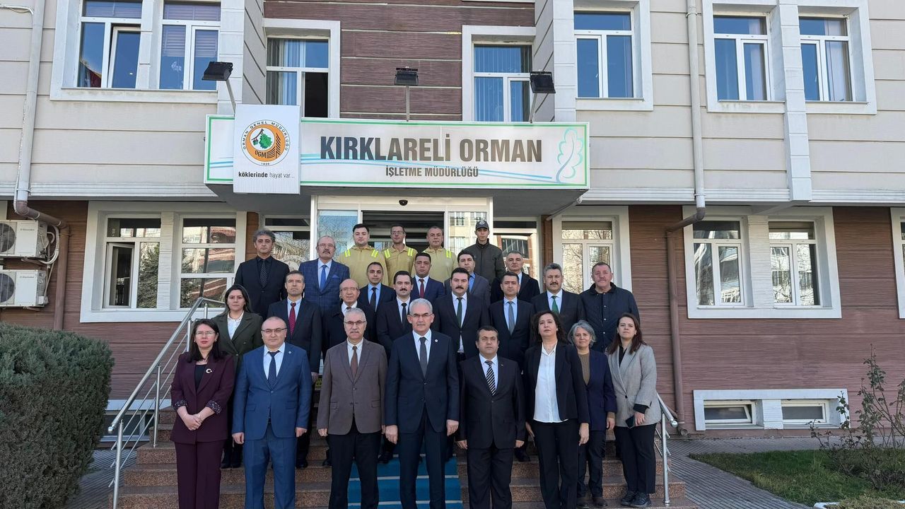 Tarım ve Orman Bakanlığı Orman Genel Müdürü Bekir Karacabey ziyaret programı kapsamında, ülkemizin en yoğun ormanlarına ev sahipliği yapan yerleşimlerinin başında gelen ilimizde Kırklareli Orman İşletme Müdürlüğü’ne de bir ziyaret gerçekleştirdi. Burada Kırklareli Orman İşletme Müdürü İsmail Karakaya, müdür yardımcıları, orman işletme şefleri ve müdürlük personeli tarafından karşılanan Orman Genel Müdürü Bekir Karacabey, ormanlarımızın korunması, geliştirilmesi ve sürdürülebilir şekilde yönetilmesi için çalıştıklarını söyledi.