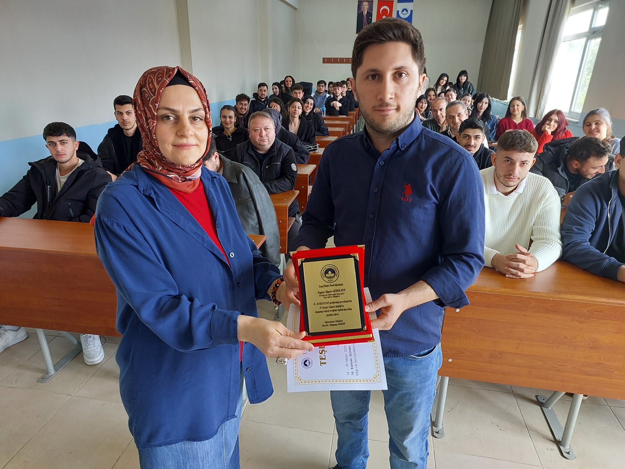 Program sonunda Hacer Gökkaya’ya Kırklareli Üniversitesi Sosyal Bilimler Meslek Yüksek Okulu Müdür Yardımcısı Dr. Haluk Keskin tarafından teşekkür belgesi ve plaketi takdim edildi. Öğretim Görevlileri Dr. Deniz Duman, Dr. Cem Sökmen, Yusuf Aslan da programa katılım sağladı.