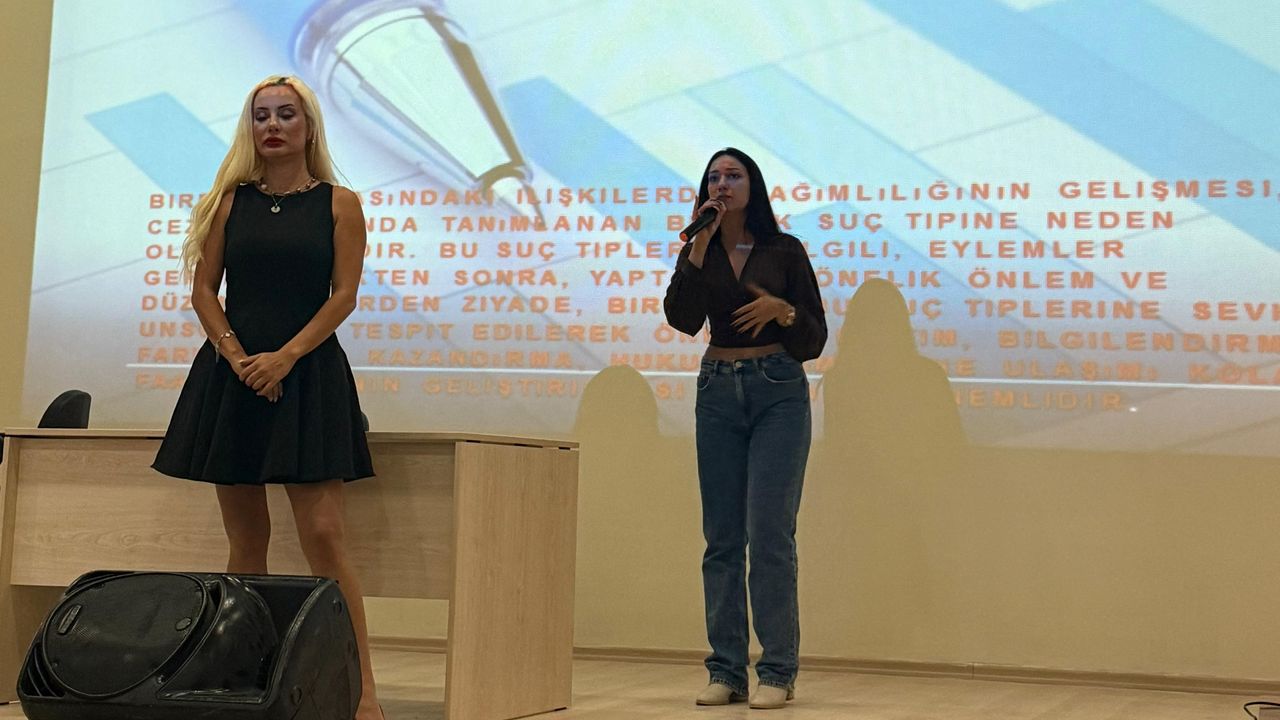 Toplantıdan sonra öğrencilere kadına yönelik işlenebilen suç tipleri hakkında bilgilendirme yapıldı.