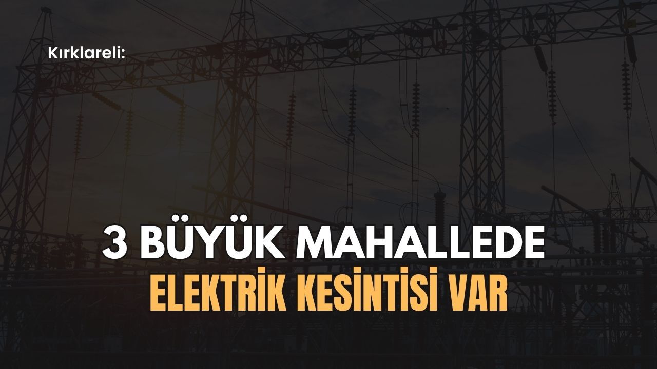 Trakya Elektrik ve Dağıtım Şirketi (TREDAŞ) 20 Kasım Perşembe günü ilimizdeki 3 büyük mahallede elektrik kesintisi yapılacağını duyurdu. Bakım ve onarım çalışmaları kapsamında Karacaibrahim, Karakaş ve Demirtaş Mahallerine bir süre enerji verilemeyecek. Söz konusu kesintiler 13.00 ile 17.00 saatleri arasında uygulanacak.