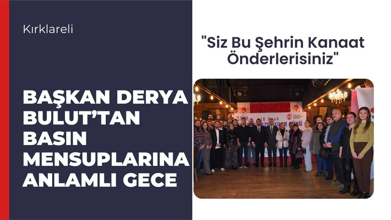 Akabinde söz alan Belediye Başkanı Derya Bulut, “10 Ocak Çalışan Gazeteciler günü münasebetiyle tertiplediğimiz bu organizasyona teşriflerinizden dolayı çok teşekkür ediyorum. Mesleğini onurla sürdüren, kalemini kimsenin gölgesine bırakmayan, halkın haber alma hakkını her şeyin üzerinde tutan basın emekçilerimiz, Kırklareli’mizde yürüttüğümüz her çalışmada, attığımız her adımda siz değerli hemşehrilerimizle olan iletişimimizin en önemli unsurlarından.