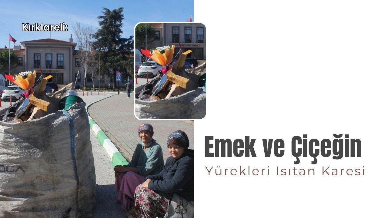 Buldukları kartonları koydukları el arabasının bir ucuna bağmış çiçek, objektiflere yansıdı. Emek veren kadınların yüzlerini gülümseten bir demet çiçek kartonların baş ucunda el arabasının üzerinde fotoğraflandı. Bir yanda hayat mücadelesi bir yanda duyguların en belirgin ifadesi bir buket çiçek. Görenlerin göz ucu ile izlediği emek ve çiçek buluşması, Özgürlük ve Demokrasi Meydanı’ndan usulca geçip kendi yoluna gitti.