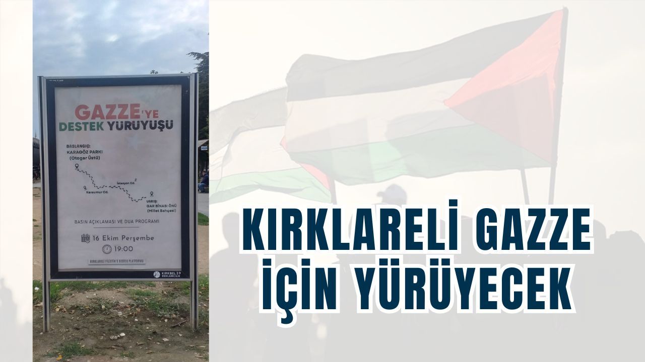 Filistin ve Gazze ile ilgili dayanışma sağlamak için stk’ların içerisinde bulunduğu Kırklareli Filistin Dayanışma Platformu tarafından 16 Ekim Perşembe günü saat 19:00’da yürüyüş gerçekleştirilecek.