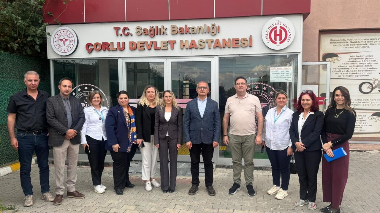 Bu kapsamda, tatbikat hazırlıkları ve koordinasyon çalışmaları doğrultusunda Kırklareli Eğitim ve Araştırma Hastanesi’nden; Başhekim Dr. Öğr. Üyesi Zeliha Türkyılmaz, İdari ve Mali İşler Müdürü Zafer Özcüce, Sağlık Bakım Hizmetleri Müdürü Işıl Esen, Sivil Savunma Hizmetleri Birim Sorumlusu Kübra Ilgın Ay Çorlu Devlet Hastanesi yönetim ekibi ile bir araya gelerek yerinde toplantı ve saha gezisi gerçekleştirdi. Gerçekleştirilen görüşmede, afet senaryoları, hastaneler arası koordinasyon, planlama ve hazırlık süreçleri detaylı şekilde ele alındı.