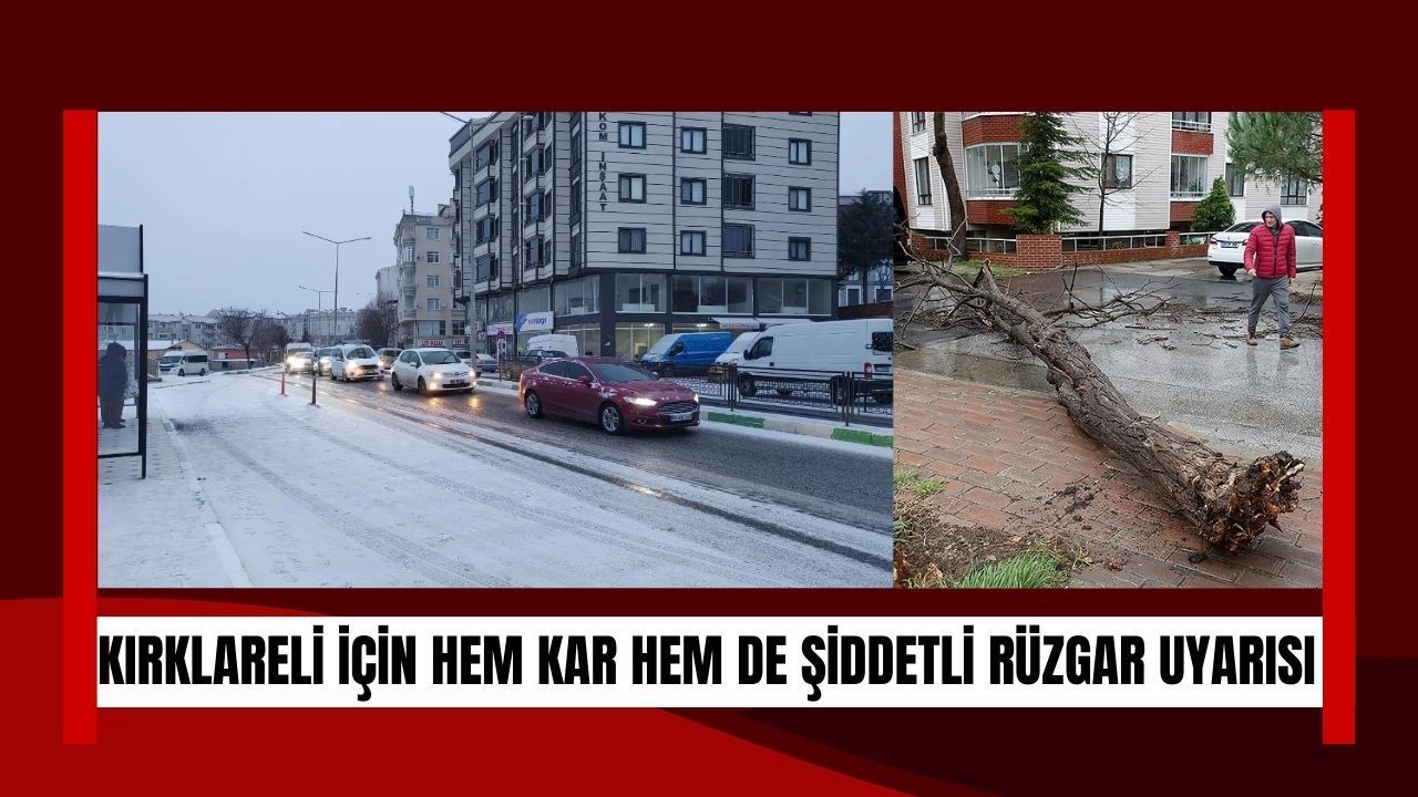 İlimiz için aynı anda iki uyarı geldi. Kırklareli Valiliği hem kuvvetli kar yağışı hem de şiddetli rüzgar uyarısında bulundu.