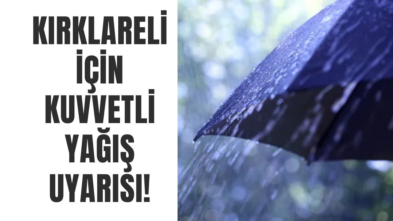 Kırklareli için kuvvetli sağanak yağış uyarısı yapıldı.