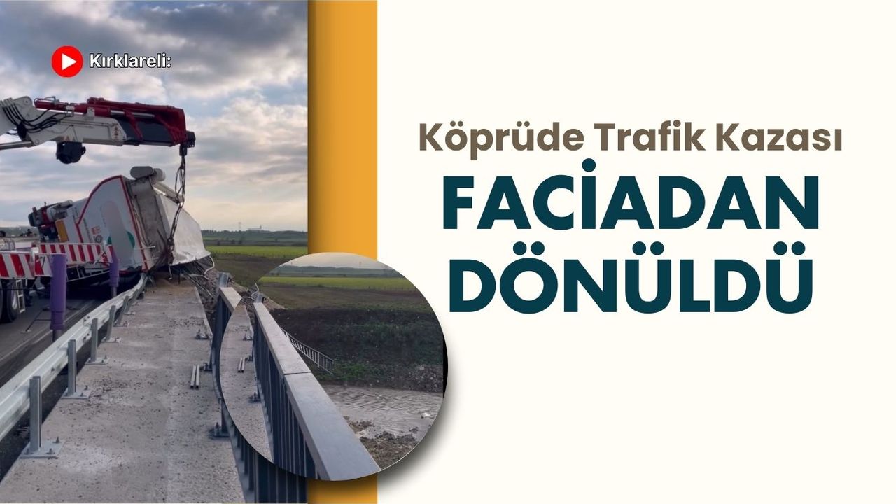 Köprü üzerinde meydana gelen trafik kazasında şans eseri can kaybı olmadı. Maddi hasar meydana gelen kazada yüklü bir kamyon köprü üzerinde savrularak yan yattı.