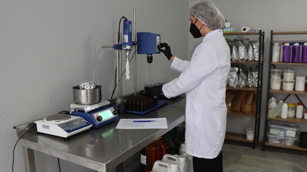 Yaklaşık 30 metrekarelik laboratuvarda butik üretim yapan Kahya, doğal ürünleri nihai tüketiciye ulaştırıyor.