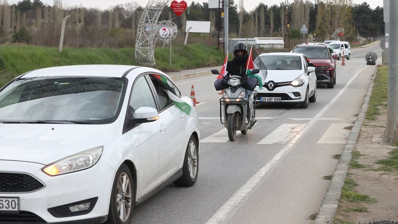 İnsan Hak ve Hürriyetleri (İHH) İnsani Yardım Vakfı Kırklareli Temsilciliğinin koordinesinde Pınar Mahallesi Turist Caddesi'nde bir araya gelen grup araç konvoyu oluşturdu.