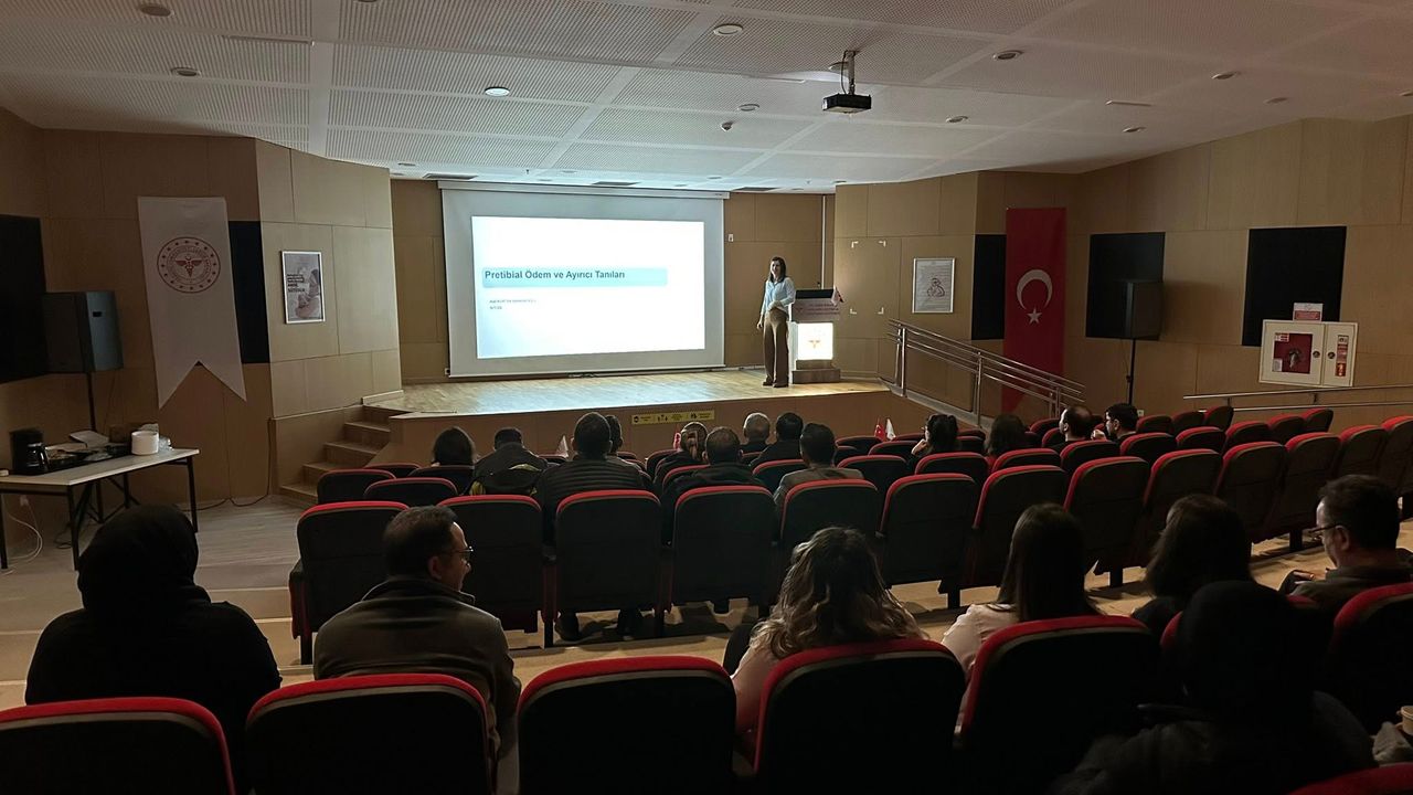 Hastanede düzenlenen seminerde; alt ekstremitede sık karşılaşılan pretibial ödemin nedenleri, sistemik ve lokal ayırıcı tanılar, klinik değerlendirme ve yönlendirme süreci ele alındı. Vaka örnekleriyle desteklenen sunumda, tanıya yönelik güncel bilgiler paylaşıldı. Soru-cevap bölümünün ardından seminer sona erdi.