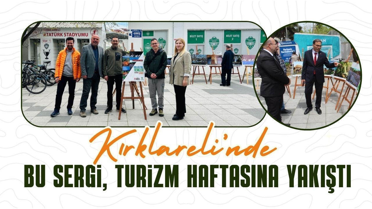 Atatürk Stadyumu girişi önünde düzenlenen sergide Kırklareli’nin tarihi ve turistik karelerini içeren 28 fotoğraf ziyaretçilerini bekliyor.