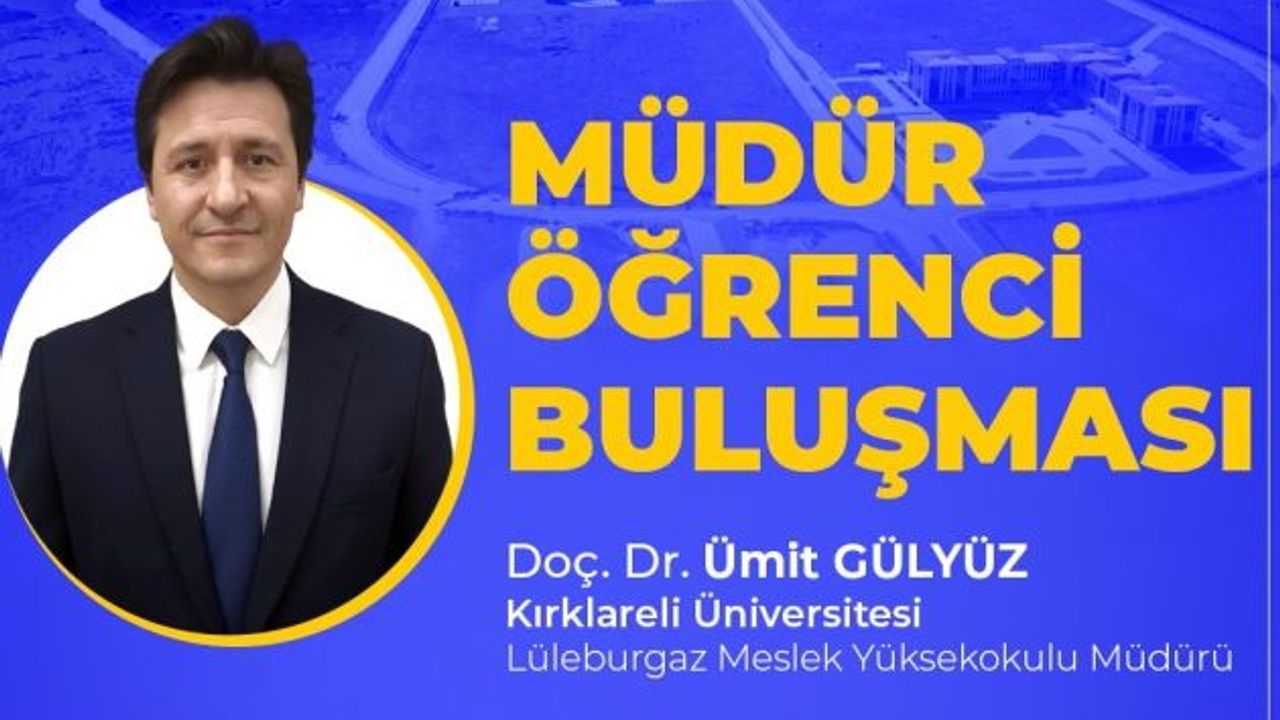 Lüleburgaz Meslek Yüksekokulu tarafından öğrenciler ile yüksekokul yönetimi arasında doğrudan iletişimi güçlendirmek, akademik ve idari süreçlere ilişkin görüş alışverişinde bulunmak amacıyla “Müdür Öğrenci Buluşması” etkinliği düzenlenecek.