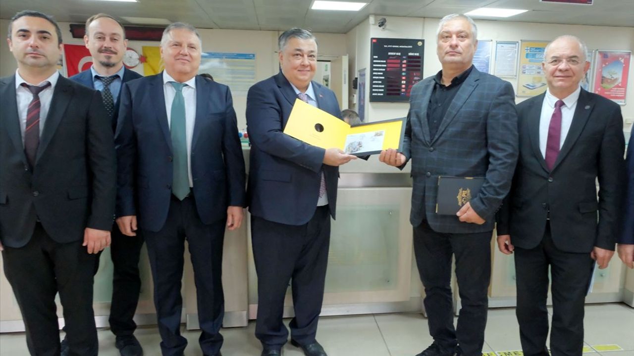 Kırklareli Vali Vekili Yusuf Güler, yıl dönümü etkinlikleri kapsamında 185. müşteri Ufuk Topuz'a, Cumhuriyet'in 102. yılı dolayısıyla hazırlanan pul serisi hediye etti.