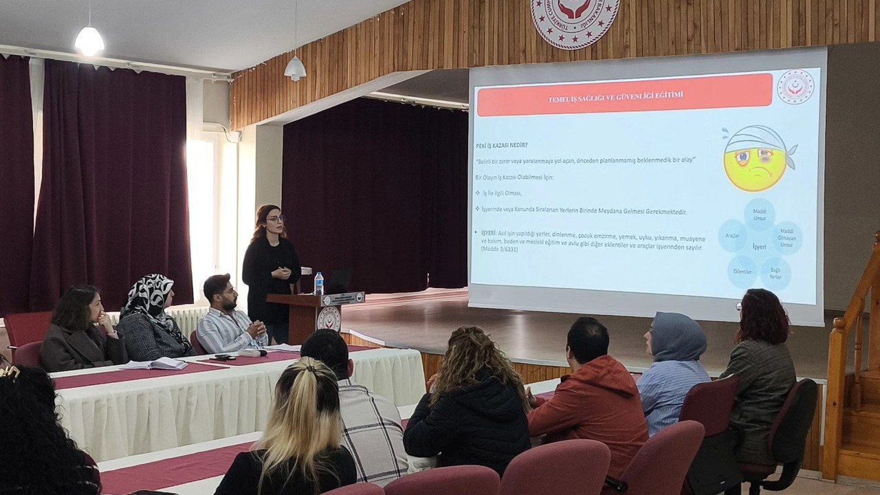 Eğitime, İl Müdürü Bilgin Özbaş, İl Müdür Yardımcıları, Şube Müdürleri ile kurum personeli katıldı. Eğitimde; iş sağlığı ve güvenliği kültürünün geliştirilmesi, çalışma ortamlarında karşılaşılabilecek risklerin önlenmesi ve mevzuat hükümleri doğrultusunda alınması gereken tedbirler hakkında kapsamlı bilgilendirme yapıldı.