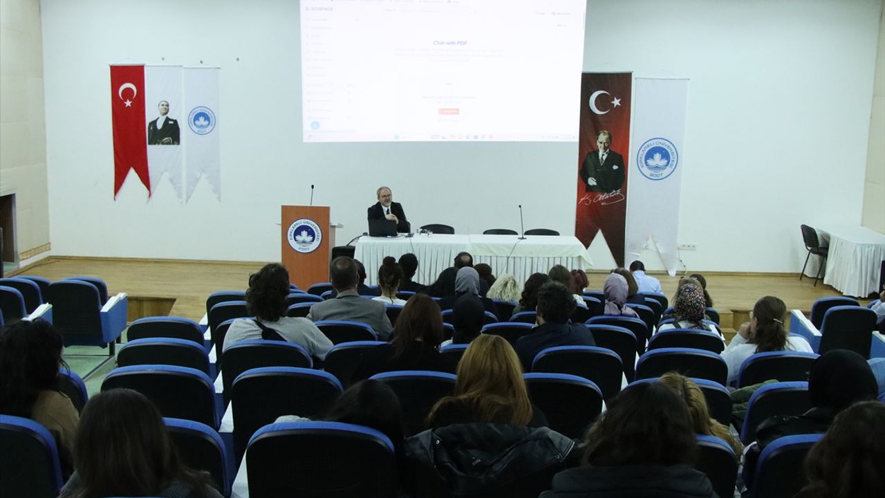 Gençbay, Kayalı Kampüsü 2. Merkezi Derslik Salonu'nda düzenlenen "Yapay Zekanın Eğitim ve Araştırmada Kullanılması" konferansında, yapay zekanın son bir yıldır çok fazla etkin kullanılmaya başlandığını belirtti.