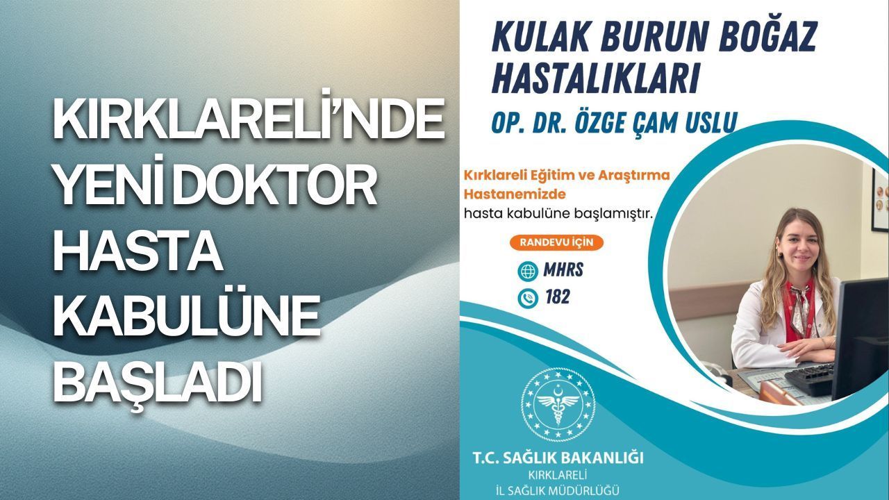 İlimizde en çok ihtiyaç duyulan branşların başında gelen Kulak, Burun ve Boğaz Hastalıkları Polikliniğine atama yapıldı. Ataması yapılan Kulak, Burun ve Boğaz Hastalıkları Uzmanı Op. Dr. Özge Çam Uslu Kırklareli Eğitim ve Araştırma Hastanesi’nde hasta kabulüne başladı.