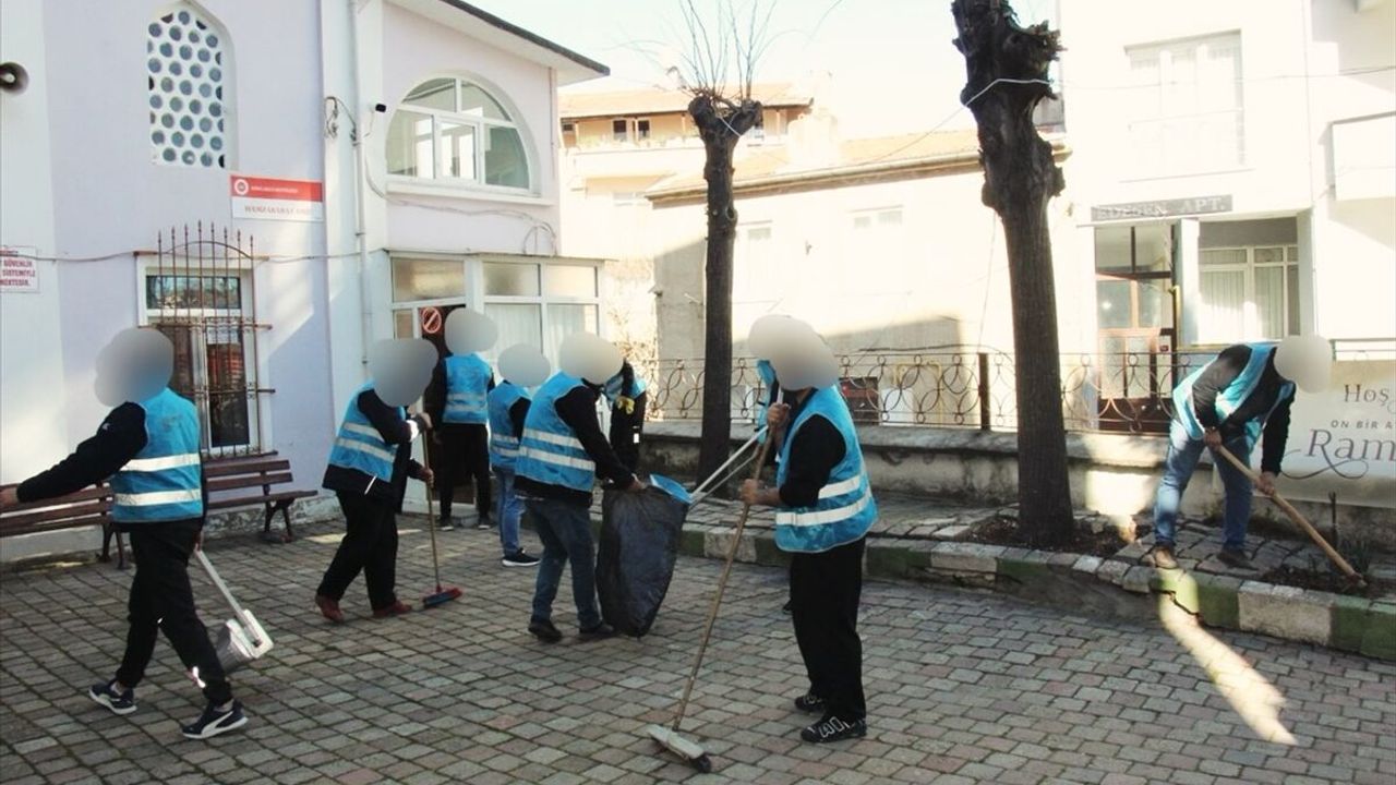 Yükümlüler tarafından camilerin içi, avlusu ve çevresinde temizlik çalışması yapıldı.