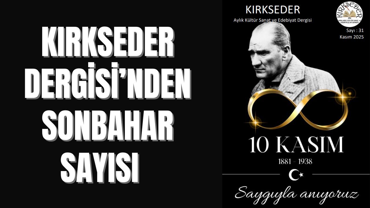 Üye sayısını ve kabul edilebilirliğini her geçen gün arttırarak sesini daha çok duyulmasını sağlayan, Trakya’da kültür ve sanatın güçlü sesi haline gelen Kırklareli Kültür Sanat ve Edebiyatçılar Derneği (KIRKSEDER), çıkardığı elektronik dergide Ulu Önder Mustafa Kemal Atatürk’ü andığımız Kasım 2025 ayına 31. sayısıyla okurlarına ulaştı.