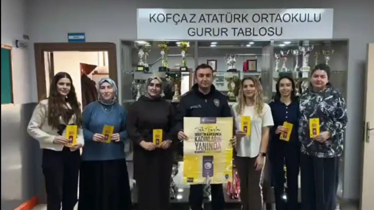 Kofçaz İlçe Emniyet Amirliği ve Kofçaz İlçe Jandarma Komutanlığı müşterek olarak 25 Kasım Kadına Yönelik Şiddete Karşı Uluslararası Mücadele Günü kapsamında anlamlı bir etkinlik gerçekleştirdi. İlçe merkezinde ve ilçe köylerinde KADES uygulaması tanıtıldı.