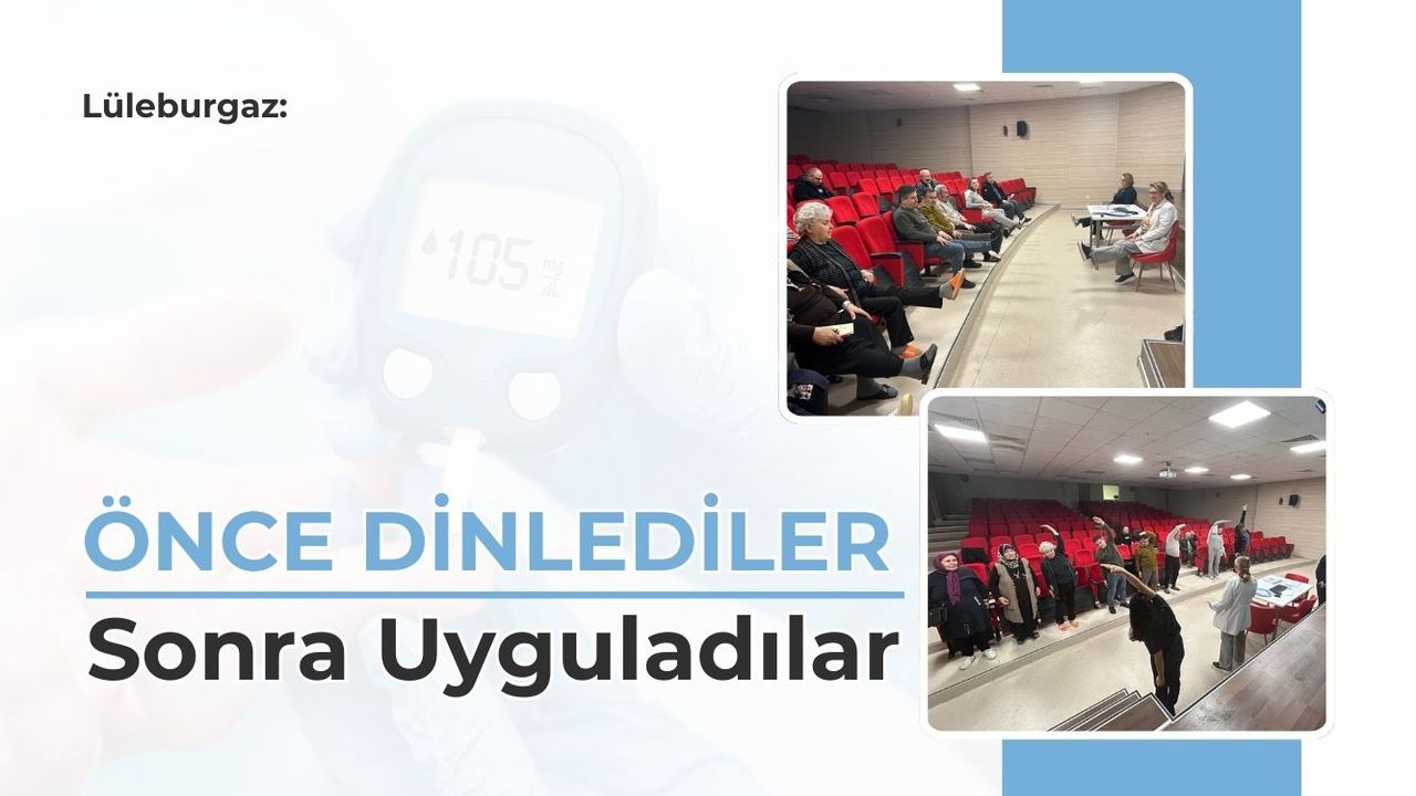 Lüleburgaz Devlet Hastanesi diyabet konusunda verimli bir programa ev sahipliği yaptı. Hastane konferans salonunda Diyabet Okulu Eğitimi verildi. Eğitim kapsamında, hastane Diyabet Okulu Komitesi üyelerinden Uzm. Dr. İrem Karakaya Uzm. Hem. Serenay Metiner, Hem.Şaziye Erol, Dyt. Zeynep Akduman ve Fizyoterapist Nursevi Yılmaz Arabacı, Diyabet riski olan ve Tip 2 diyabet tanısı almış bireylere yönelik bilgilendirmelerde bulunuldu.