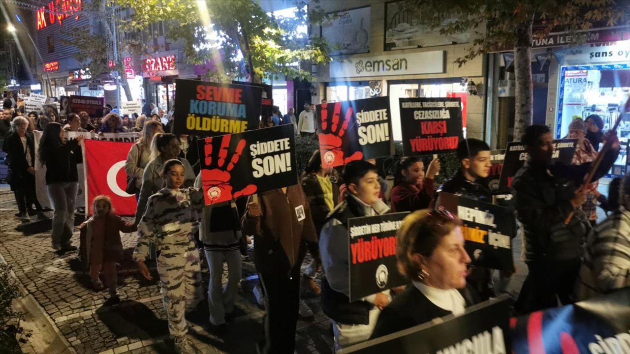 Gündoğdu Mahallesi'nde toplanan grup "Şiddete son", "Kadına şiddete hayır" yazılı dövizlerle Kongre Meydanı'na yürüdü.