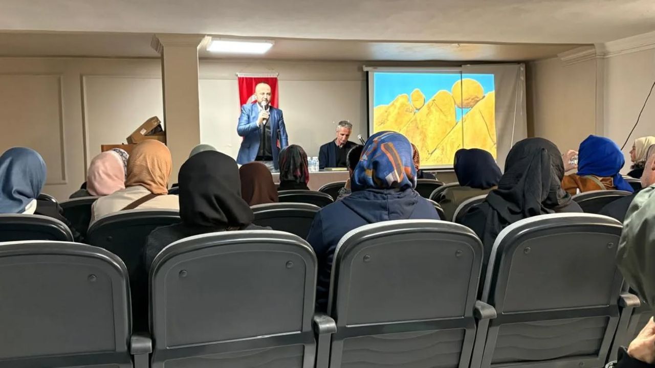 Yıldız Camii İmam Hatibi Ferhat Büyük ve Sümeyye Hatun 4-6 Yaş Kur’an Kursu Öğreticisi Fatma Ergül rehberliğinde yapılacak umrenin Umre Semineri yapıldı.