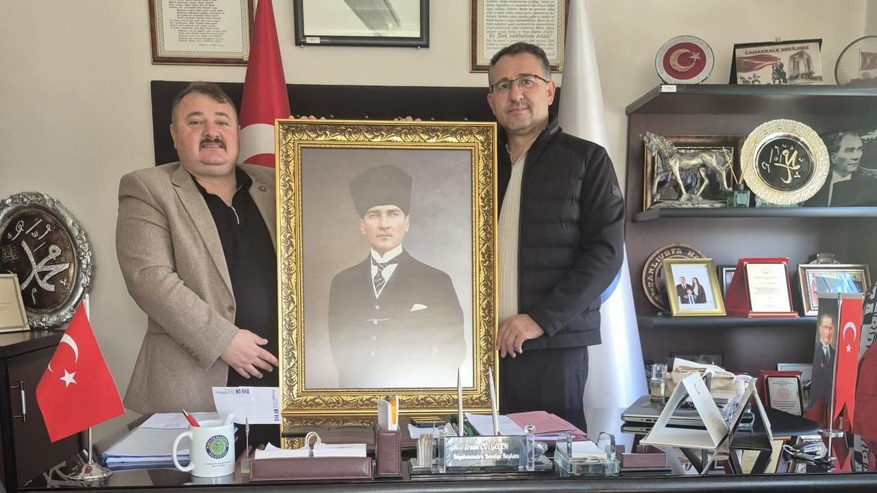 Çalışmalar üzerine görüşen ve fikir alışverişi yapan Meclis Üyesi Kahraman, nazik ev sahipliği için Başkan Çölgeçen’e teşekkür ederek Atatürk portresi hediye etti.