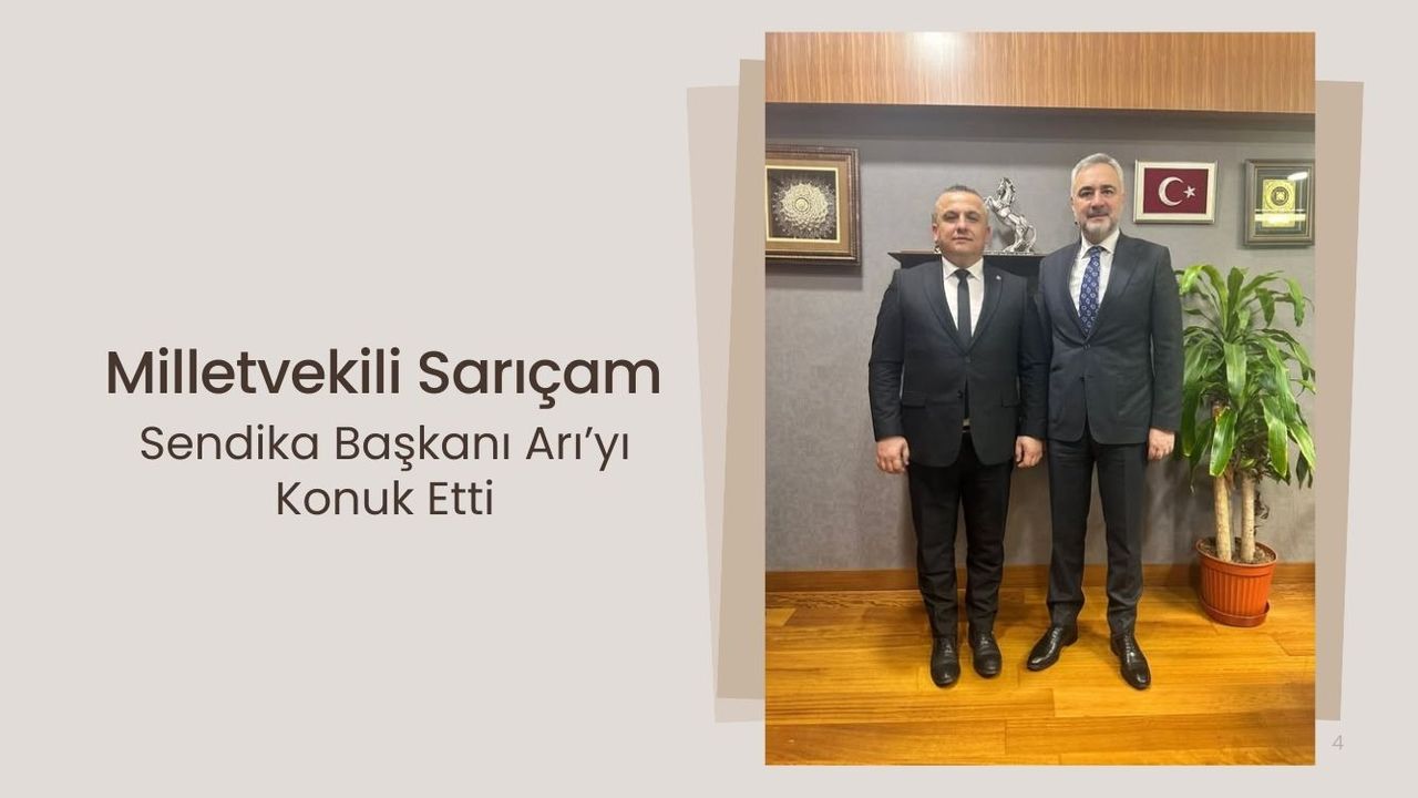 Milletvekili Sarıçam son olarak Hak-İş Konfederasyonu Kırklareli İl Başkanı ve Öz Sağlık-İş Sendikası Kırklareli Şube Başkanı İbrahim Arı’yı makamında ağırladı. Nazik ziyaretinden dolayı teşekkür eden Sarıçam, “Hak-İş Konfederasyonu Kırklareli İl Başkanı ve Öz Sağlık-İş Sendikası Kırklareli Şube Başkanı Sayın İbrahim Arı Gazi Meclisimizde bizleri ziyaret etti. Nazik ziyaretleri dolayısıyla kendilerine teşekkür ediyor, çalışmalarında başarılar diliyoruz” dedi.