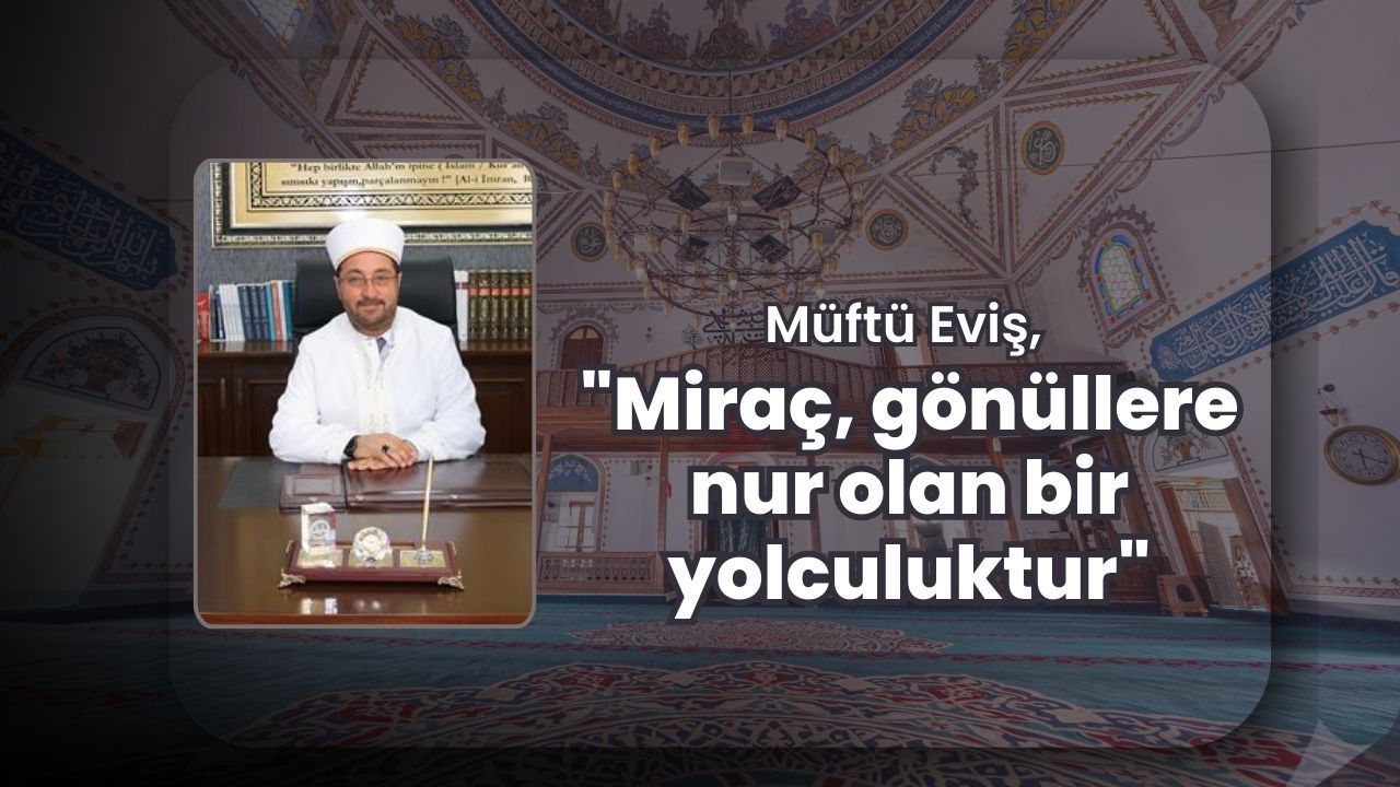 Gazze vurgusu yapan Müftü Eviş, “Bugün Gazze’de, Kudüs’te ümmetin kalbi sızlarken, Hz. Âişe'nin iffet ve sabır örneğiyle, Abdülmuttalib’in peygamber torununa bıraktığı emanet şuuruyla, bizlere düşen görev; Miraç’ın mesajını hayatımıza taşımaktır. Miraç Kandili’nin, başta Gazze olmak üzere tüm mazlum coğrafyalara huzur, ümmete birlik, gönüllere ferahlık getirmesini Yüce Rabbimiz'den niyaz ederim. Miraç Kandilimiz mübarek olsun” ifadelerini kullandı.