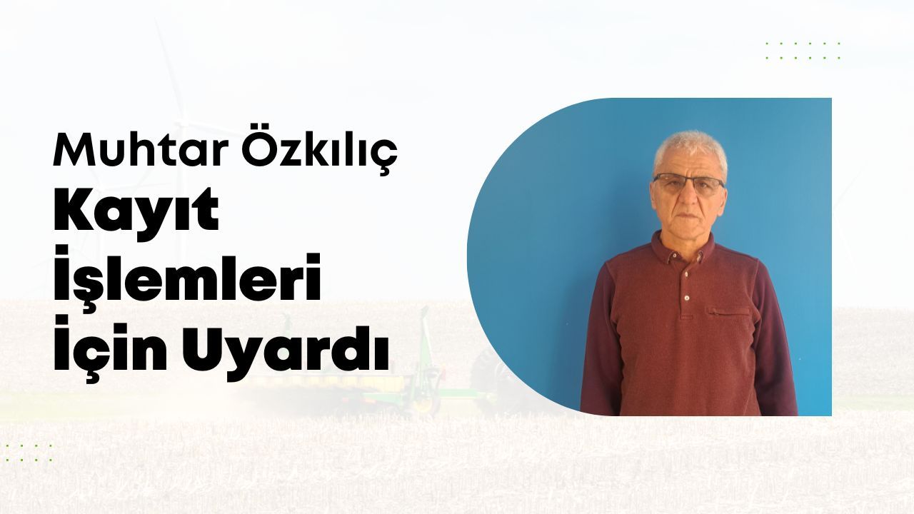 Tarım arazileri Çiftçi Kayıt Sistemi'ne (ÇKS) kayıtlı olmayan vatandaşlara çağrıda bulunan Muhtar Özkılıç, 23 Ekim Perşembe gününe kadar muhtarlığa gelerek gerekli işlemlerin yapılması gerektiğini belirtti.