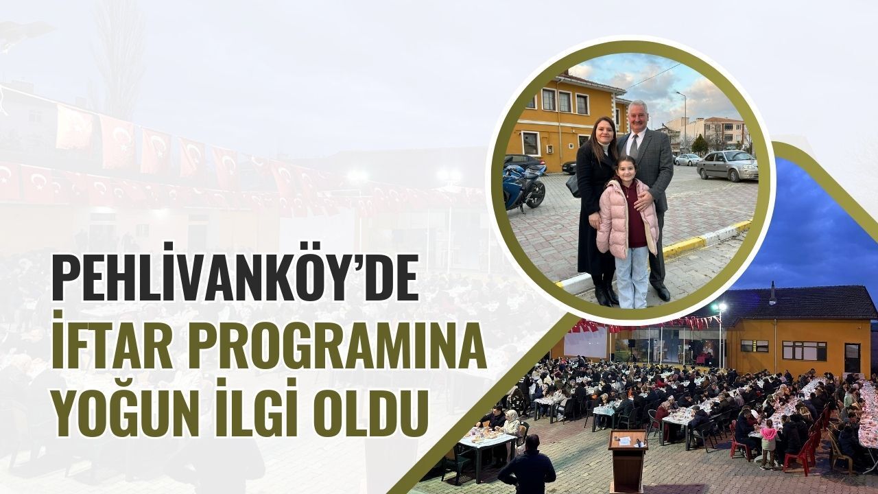 Pehlivanköy Belediye Başkanı Gündüz Hoşgör ev sahipliğinde yapılan iftar programına, Kırklareli AK Parti Milletvekili Ahmet Gökhan Sarıçam da katılım sağladı. Büyükmandıra Belediye Başkanı Ersan Çölgeçen, İnece Belediye Başkanı İlhan Arı, Subaşı Belediye Başkanı Göksel Tüfekçi, AK Parti Kırklareli Merkez İlçe Başkanı Bahadır Kovankaya, Pehlivanköy İlçe Müftüsü Ahmet Akkan, Pehlivanköy Gençlik ve Spor İlçe Müdürü Adnan Tayfun, protokol üyelerinin yanı sıra vatandaşlar da yoğun ilgi gösterdi.