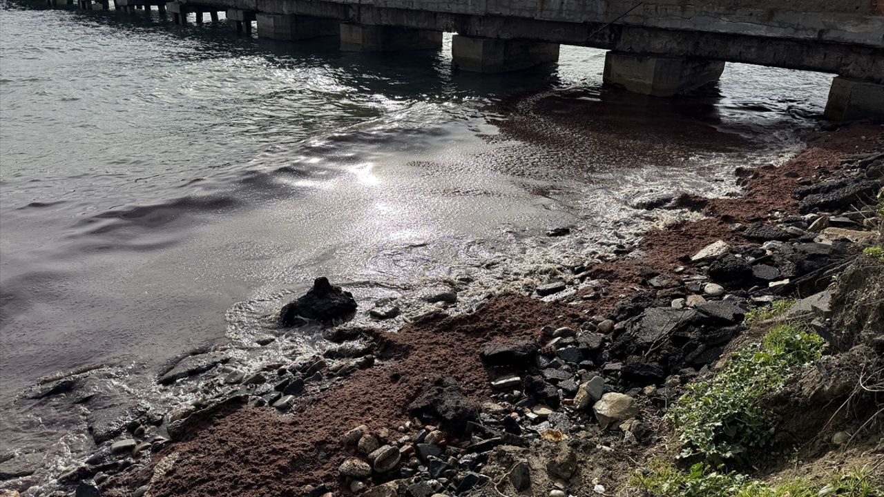 Tekirdağ'da iki gündür etkisini gösteren kuvvetli rüzgar nedeniyle sahilin bir kısmı kırmızı yosunla kaplandı.