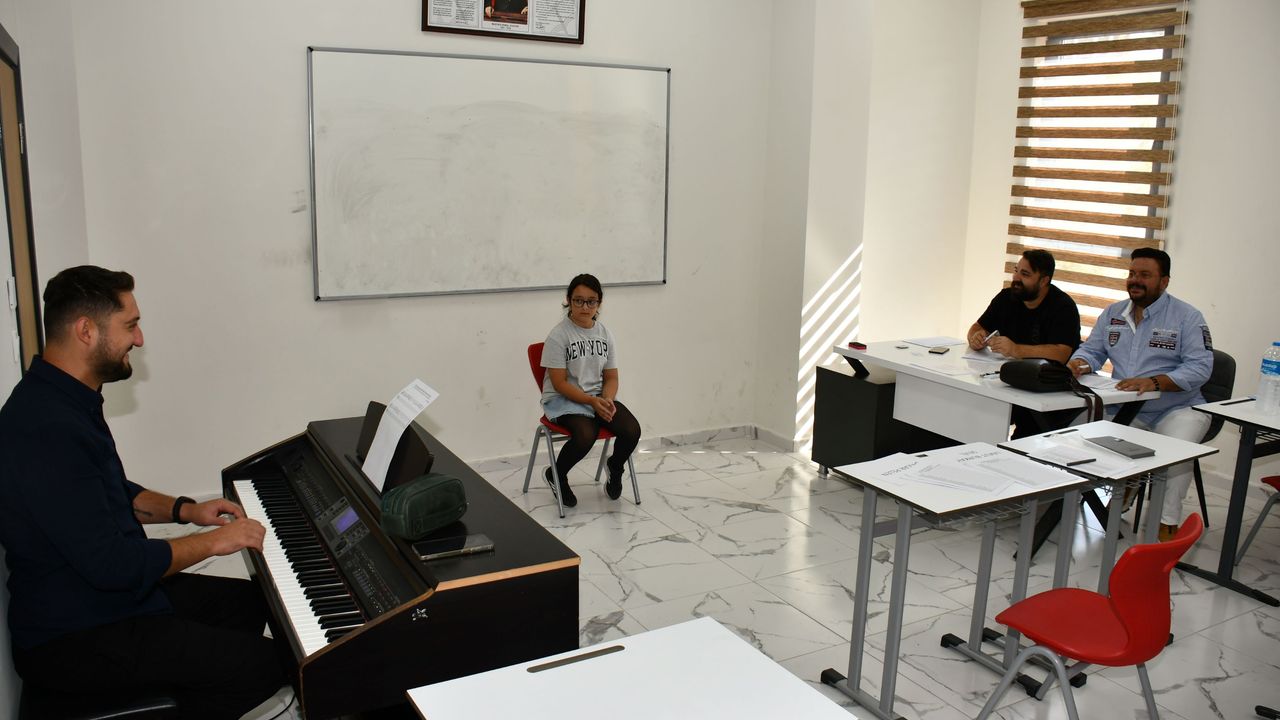 Süleymanpaşa Belediye Konservatuvarı binasında yapılan sınavda öğrenci adayları, tek ses-çift ses duyma ve tekrar etme, melodi duyma ve tekrarlama, ritim kulağı olmak üzere üç farklı aşamada değerlendirildi.