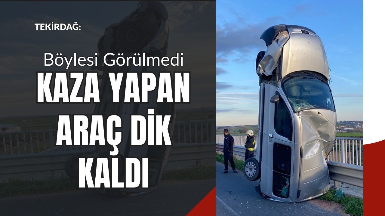 Çarpmanın etkisiyle araç, bagaj kısmının üzerine dik konumda durdu.