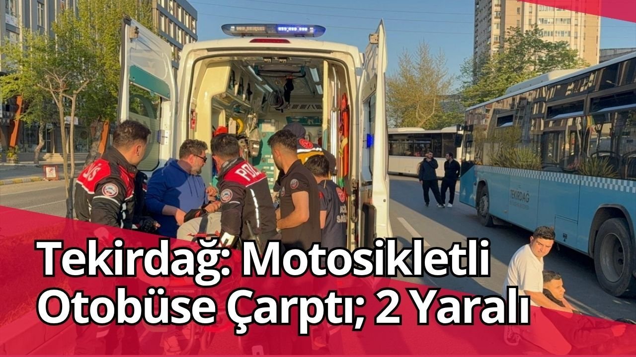 Tekirdağ’ın Çorlu ilçesinde durakta yolcu indiren belediye otobüsüne arkadan çarpan motosikletteki 2 kişi yaralandı.