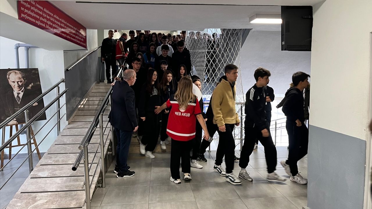 Daha sonra binadaki öğrenciler, İl Milli Eğitim Müdürlüğü MEB-AKUB ekibi koordinesinde kontrollü şekilde tahliye edilerek okul bahçesinde toplandı.