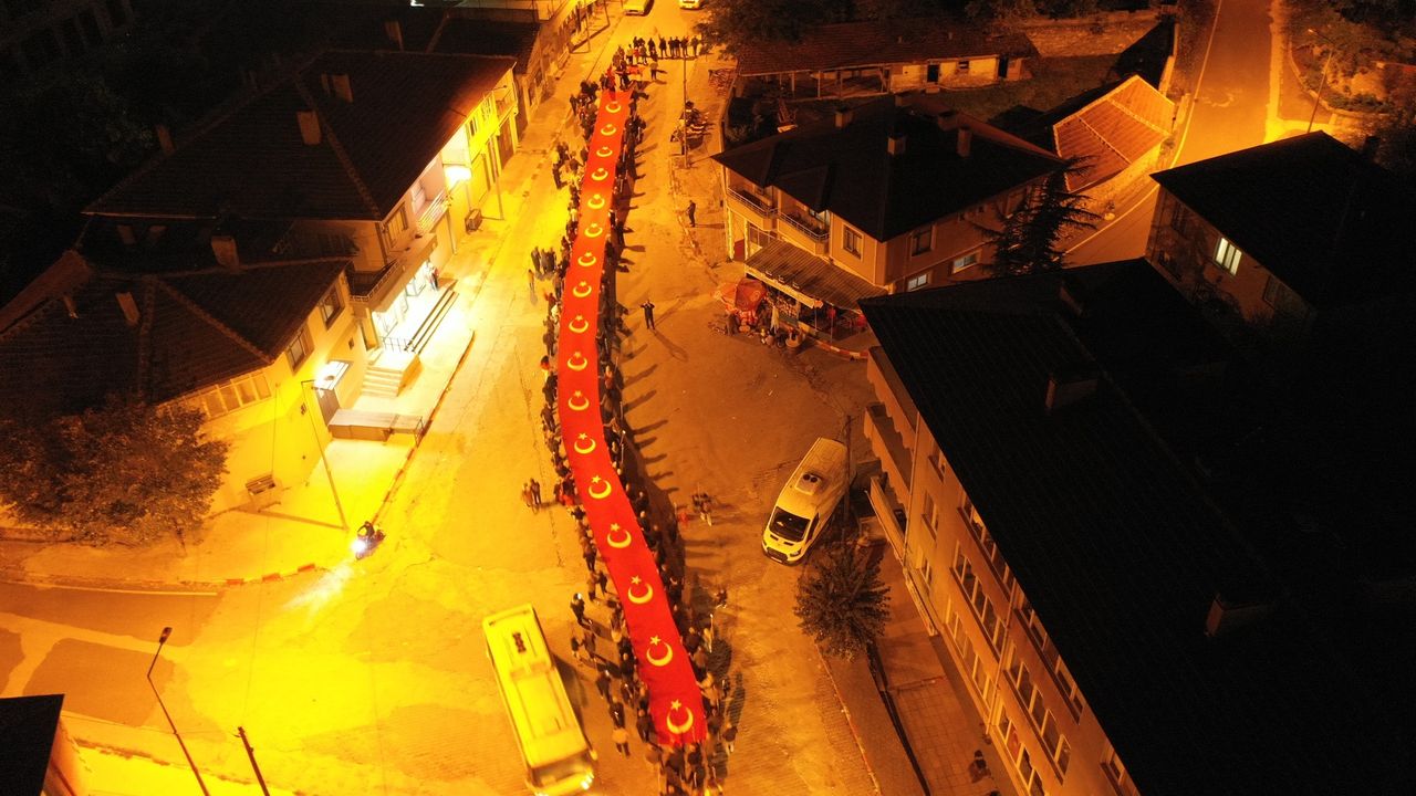 Üsküp’te 29 Ekim Cumhuriyet Bayramı’nın 102’nci yıl dönümü kutlama etkinlikleri kapsamında coşkulu bir fener alayı yürüyüşü düzenlendi. 50 metrelik dev Türk Bayrağı’nın açıldığı yürüyüşe vatandaşlar yoğun ilgi gösterdi.