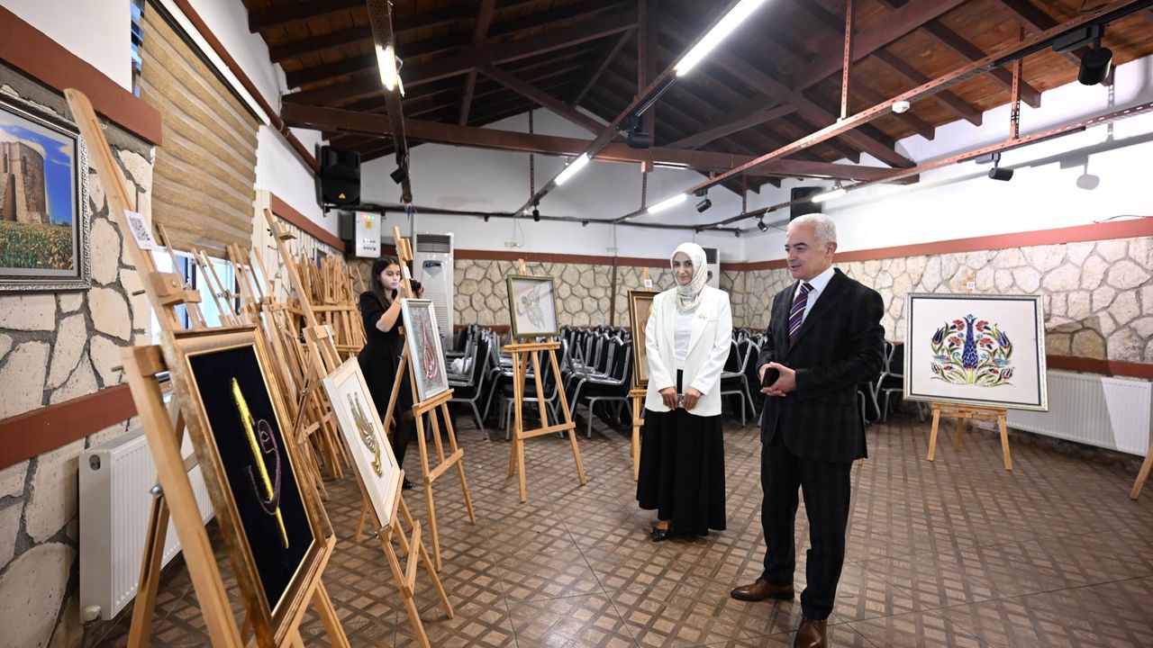 Vali Turan, İl Özel İdaresi Cazibe Merkezi’nde sanatseverlerle buluşan Aylin Okkan’ın Filografi Sanat Galerisi’ni ziyaret etti.