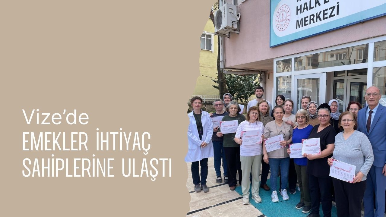 Vize İlçe Müdürlüğü koordinesinde Ramazan Ayı dolayısıyla sosyal sorumluluk çalışmaları gerçekleştirildi. Vize Halk Eğitim Merkezi Giyim Üretim Teknolojisi öğretmeni Deniz Akyüz ve kursiyerleri tarafından dikilen eşofman takımları ihtiyaç sahibi çocuklara ulaştı. Hayata geçirilen anlamlı çalışmalardan dolayı da İlçe Milli Eğitim Müdürü Recep Akdemir, öğretmen ve kursiyerlere teşekkür belgelerini takdim etti.